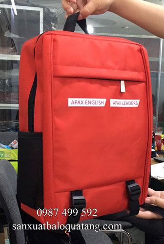 Hình ảnh balo quà tặng in logo thương hiệu Apax English